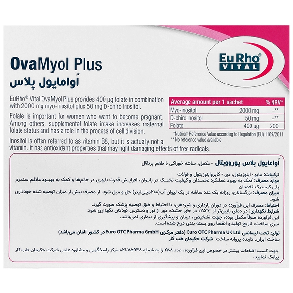 اوامایول پلاس یک مکمل تغذیهای تخصصی برای بهبود باروری در بانوان و سلامت تخمدانها است. این محصول با هدف ارتقای عملکرد تخمدان، به بهبود کیفیت تخمک و تنظیم تعادل هورمونی کمک میکند و میتواند برای بانوانی که با چالشهای باروری مواجه هستند، گزینهای مؤثر باشد. اوامایول پلاس به شکل ساشههای 14 عددی در جعبه مقوایی بسته بندی میشود. این محصول تحت لیسانس شرکت یوروویتال آلمان بوده و در ایران توسط شرکت حکیمان طب کار تولید میشود. ساشه اوامایول پلاس یوروویتال یا طعم دلپذیر پرتقال قابل استفاده است.