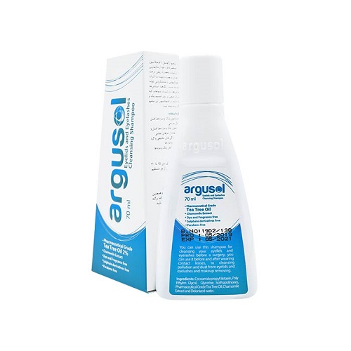 شامپو پلک و مژه آرگوسول، که شامل 2 درصد روغن درخت چای است، به عنوان یک ترکیب مفید برای حفاظت از بهداشت پلک و مژه معرفی شده است. مزیت اصلی این محصول در تنظیم PH آن در محدوده طبیعی PH چشم، یعنی 5.5 تا 7 قرار دارد که این امر باعث کاهش تحریک چشم می شود. همچنین، کف ایجاد شده توسط این شامپو نیز کنترل شده است و به طور قابل توجهی کمتر از شامپوهای مشابه دیگر است. برای افزودن، این شامپو بدون پارابن، سولفات، سدیم کلراید و اسانس تولید می شود.