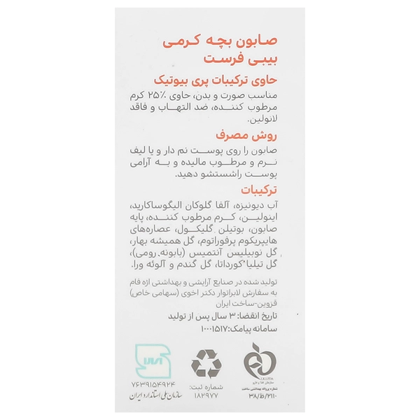 ترکیبات صابون بچه کرمی بیبی فرست