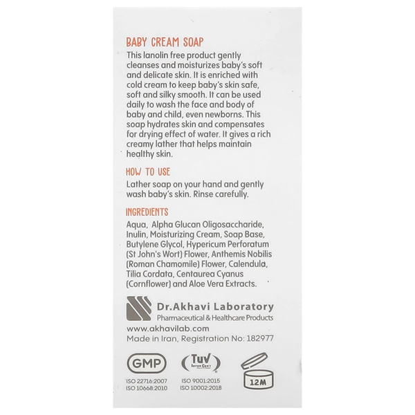 صابون بچه کرمی بیبی فرست حاوی مواد ضد التهاب مثل عصاره گل همیشه بهار و آلوئه ورا بوده و التیام بخش و تسکین کننده پوست لطیف و ظریف کودک می باشد. در نتیجه خشکی، خارش و قرمزی سطح پوست آن ها را نیز کاهش می دهد. این صابون برای پوست صورت و بدن قابل استفاده است. صابون بچه کرمی بیبی فرست فاقد ترکیبات مضر و لانولین می باشد.