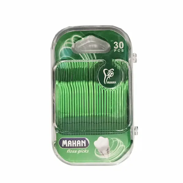 نخ دندان کمانی ماهان (Floss Picks Mahan)، برای کی خوبه؟ برای کسانی که دندانهای فشرده دارن و تنها با مسواک زدن، جرمهای بین دندانیشون از بین نمی ره. این نوع نخ دندان، دسته ارگونامیک داره که دیگه نیاز نیست مثل نخ دندانهای رولی، دور انگشت بپیچید. جنس نخی که در سرکمان هست، خیلی مقاومه و ریش ریش نمیشه. استفاده راحت داره. به عصاره نعنع آغشته شده و باعث خوشبو شدن دهان میشه.